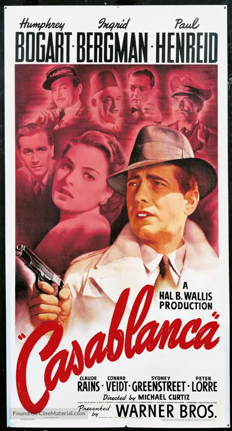 Casablanca poster movie f 27 x 40 in humphrey bogart ingrid bergman paul henreid claude rains peter lorre sydney greenstreet official theatrical movie poster of for casablanca directed by michael curtiz. Hang your posters in dorms bedrooms offices or anywhere blank walls arent welcome. Buy casablanca movie posters from movie poster shop.